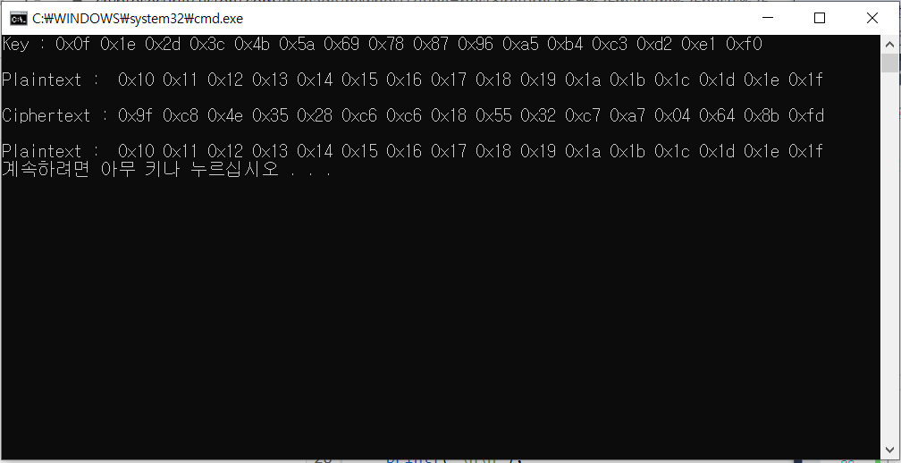 LEA 암호화 복호화 테스트 해보기