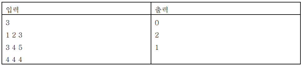 입력되는 각 정수 사이에는 한 개의 공백이 있으며, 잘못된 데이터가 입력되는 경우는 없다.