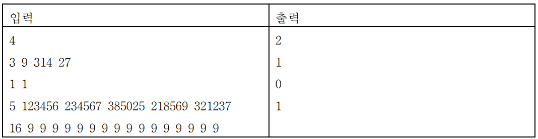 입력 파일의 첫 번째 줄에 테스트 케이스의 개수를 나타내는 정수 t 가 주어진다.