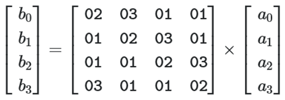 new_col[0] = m02(col[0]) ^ m03(col[1]) ^ col[2] ^ col[3]